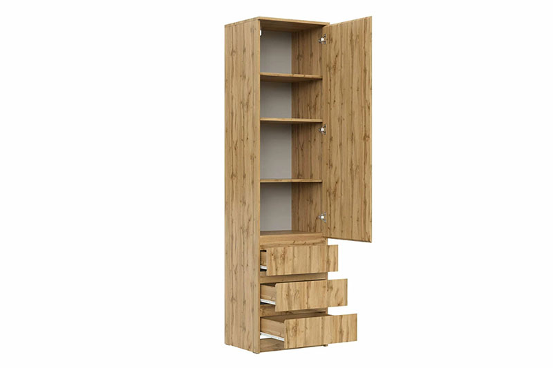 Шкаф пенал STERN ШКЯ-1 - это современное и удобное решение для хранения вещей в вашем доме или офисе. Он оснащен тремя ящиками на качественных направляющих, что обеспечивает легкость и плавность их выдвижения. Кроме того, шкаф имеет четыре полки, которые позволяют разместить на них различные предметы.