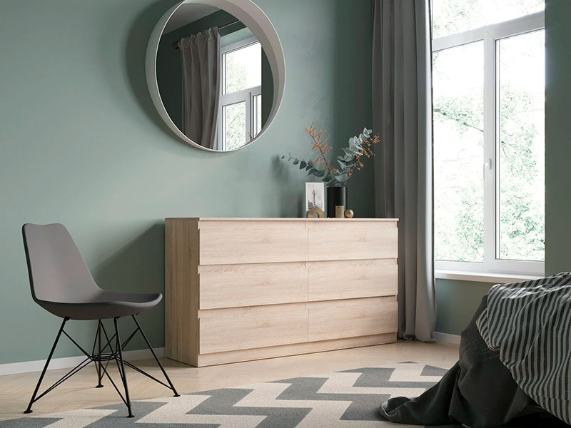 Комод Stern T-6: Стильное решение для хранения в любом пространстве. Представляем вашему вниманию комод Stern T-6 — удобную и стильную систему хранения, которая станет отличным дополнением для гостиной, спальни, прихожей или даже детской комнаты. Эта лаконичная модель в белом цвете специально разработана для небольших помещений. Небольшая глубина и высота комода позволяют ему занимать минимум места, сохраняя при этом максимальную функциональность. Комод оснащён шестью выдвижными ящиками с удобными скошенными ручками на фасадах. Его можно использовать как комод для белья, шкаф для вещей, игрушек и многого другого, предлагая широкий спектр возможностей для организации пространства. Комод Stern T-6 идеально впишется в любой интерьер и будет особенно выигрышно смотреться в сочетании с другими изделиями серии Stern, которая отличается лаконичным дизайном без лишних деталей. Благодаря небольшой высоте комодом удобно пользоваться, в том числе и детям.