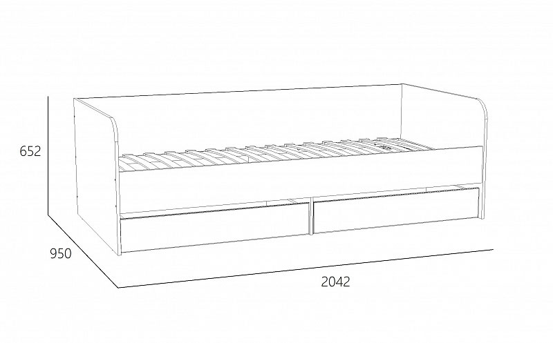 Односпальная кровать подходит для детской мальчиков и девочек в современном, скандинавском и стиле лофт. В кровати предусмотрены ящики для хранения постельного белья или игрушек. Натуральный материал ламелей не вызывает аллергии и безопасен для здоровья. Изогнутая форма ламелей придает основанию спального места большую прочность и дополняет ортопедические свойства матраса.