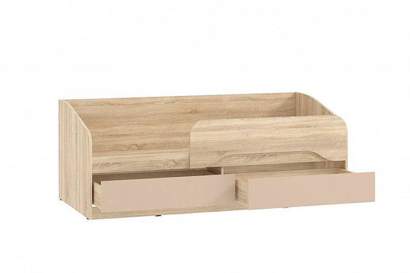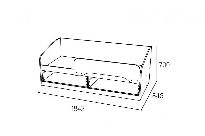 Кровать полностью безопасна для ребенка: у модели нет острых углов и накладных ручек на фасадах ящиков. Ограничитель без острых углов обеспечит ребенку безопасный сон.