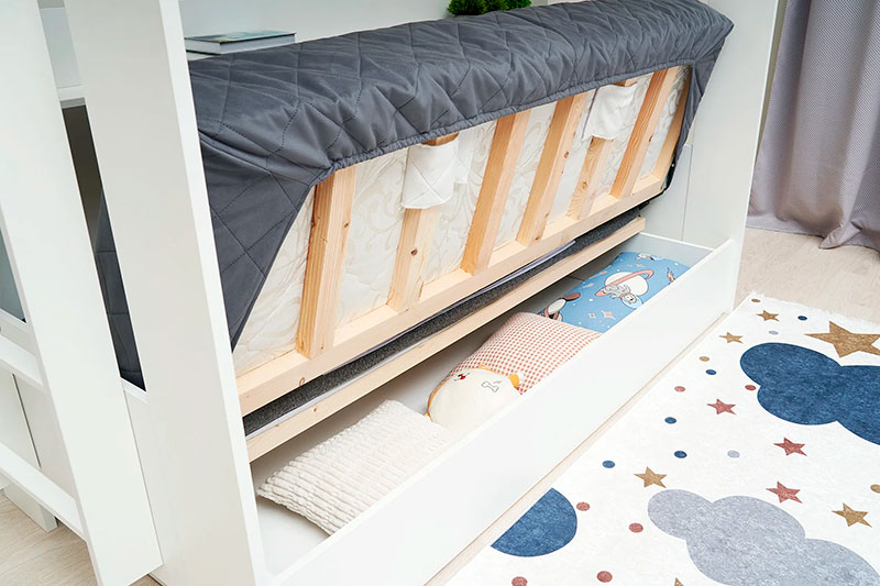 II ярус: Кровать имеет спальное место: 900 х 1900 мм. Матрас на второй ярус заказывается отдельно. Максимальная нагрузка на 2 ярус - 50 кг