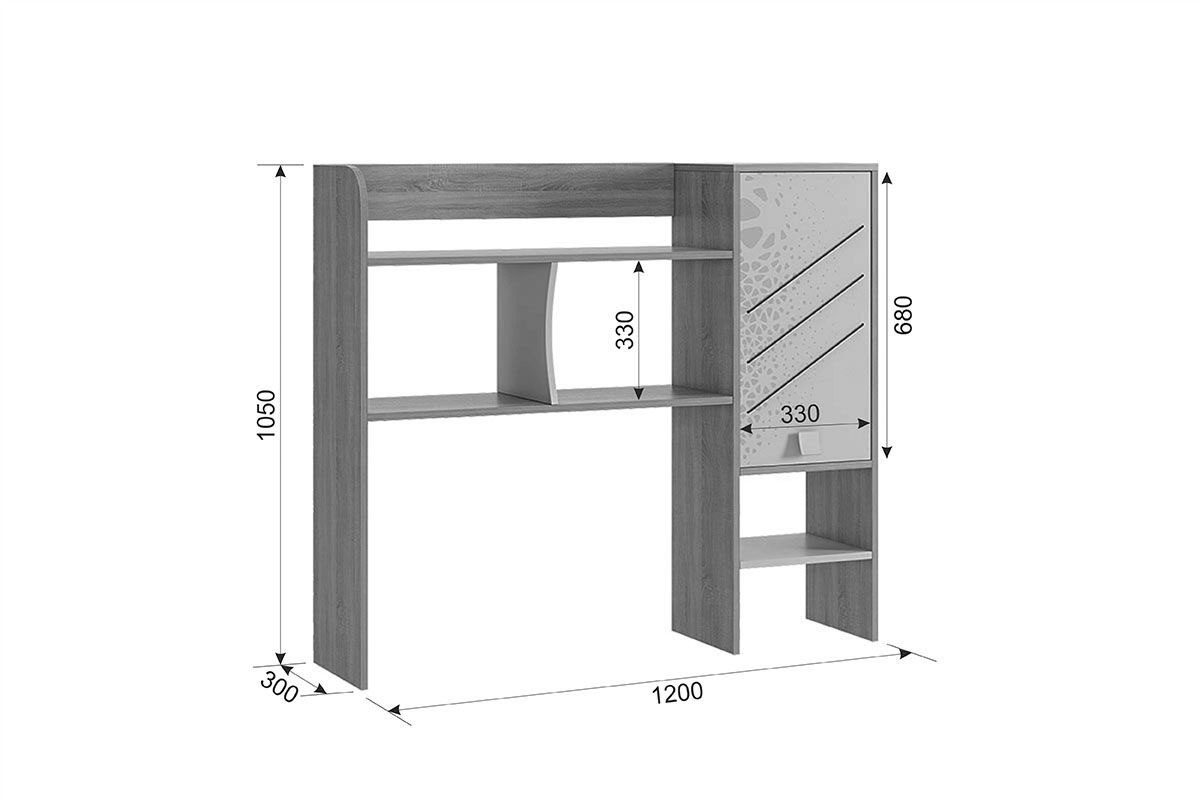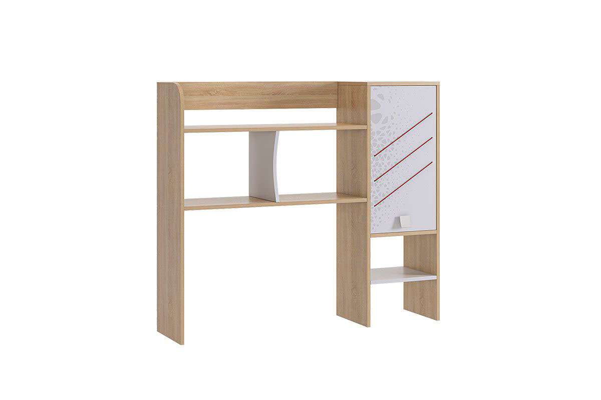 Надстройка «Энерджи» – функциональное и универсальное дополнение к столу «Энерджи». Вместительные полки предназначены для книг, учебников и папок, более того, на них можно разместить сканер или принтер. Фасад закрытой ниши с полками и принтерным рисунком. Особенностью данного модуля являются, эластичные шнуры на фасаде, под которые легко можно разместить рисунки и записки, меняя декор и настроение в комнате каждый день.