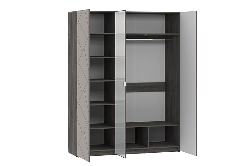 С комбинированным шкафом Summit НМ 011.44 в спальне не придется устанавливать дополнительную мебель для хранения одежды. В левой части модуля находится секция с пятью полками для белья. Правую часть шкафа занимает отделение с овальной штангой, которая способна выдержать много тяжелой верхней одежды. Антресольная полка подходит для хранения объемных вещей, а нижняя полка – для размещения коробок с обувью. Зеркальный фасад расширяет функционал шкафа и увеличивает пространство комнаты.