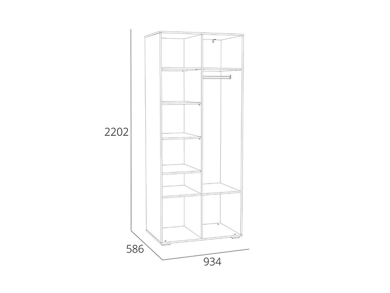 Шкаф оснащен четырьмя распашными дверьми и множеством полок, которые обеспечивают достаточно места для хранения вещей. Внутри шкафа предусмотрена овальная штанга для одежды на вешалках. Комбинируйте шкаф для одежды и одноименные модульные шкаф-пеналы или стеллаж, чтобы создать системы хранения на любой вкус и размер!