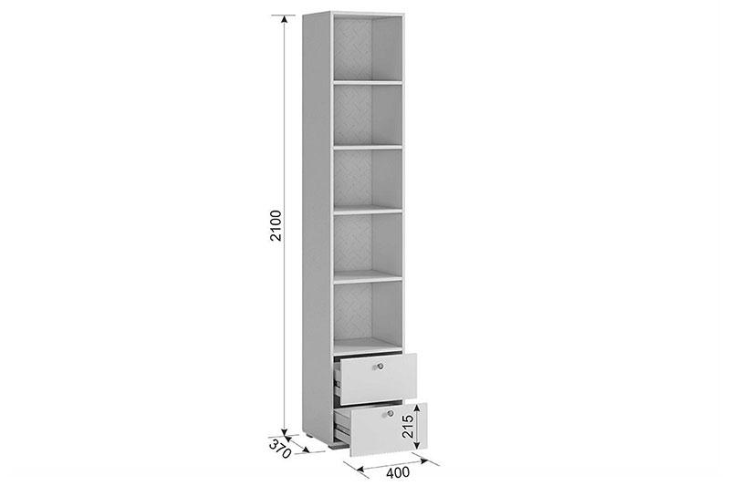 Состоит из: отделений с полками и двух выдвижных ящиков