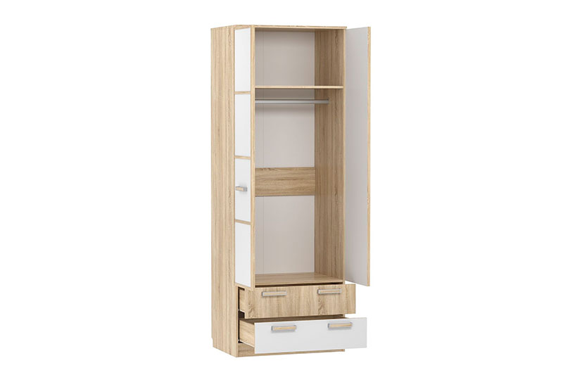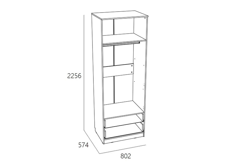 Шкаф «Фанк» предназначен для тех, кто любит выдержанный стиль. Идеально для организации подростковой комнаты. А универсальный дизайн и цветовое решение подойдет как для мальчика, так и для девочки. Внутри модуля предусмотрены овальная штанга для одежды на вешалках. Широкая антресольная полка подойдёт для размещения коробок и аксессуаров. Плавный и бесшумный ход, у двух выдвижных ящиков, обеспечивают шариковые направляющие полного цикла. Благодаря им, равномерно распределяется вес содержимого ящиков. Классические глухие фасады надежно защитят содержимое шкафа от влаги и пыли.