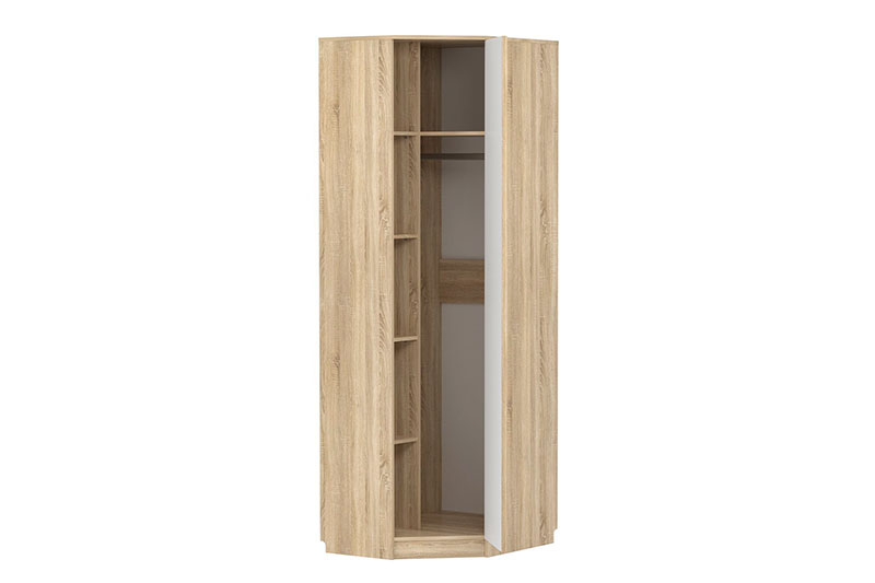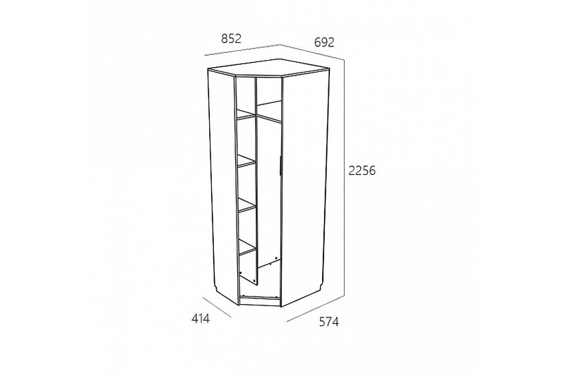 Шкаф «Фанк» предназначен для тех, кто любит выдержанный стиль. Идеально для организации подростковой комнаты. А универсальный дизайн и цветовое решение подойдет как для мальчика, так и для девочки. С угловым шкафом «Фанк» получится максимально использовать пространство в комнате, задействовав место в углу. Внутри модуль разделен на две функциональные зоны. Секция с пятью полками подходит для хранения одежды в сложенном виде, а на штанге в другой половине шкафа можно разместить одежду на вешалках-плечиках. Широкая полка, расположенная над штангой, удобна для хранения коробок.