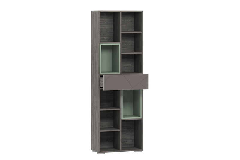 Книгам и предметам декора всегда найдется место на полках стеллажа из коллекции SUMMIT, главная изюминка которого – оригинальные цветные вставки, разбавляющие строгий темно-коричневый цвет корпуса. Регулируемые по высоте опоры позволят идеально ровно установить стеллаж в гостиной. Выдвижной ящик для документов, открывающийся от легкого нажатия на него, прослужит долгие годы благодаря направляющим частичного выдвижения.
