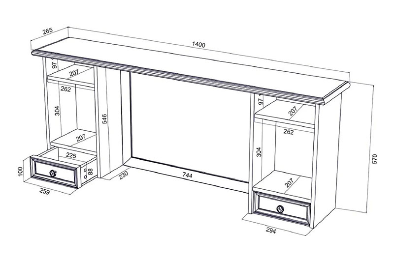 Размеры: 1400*265*570