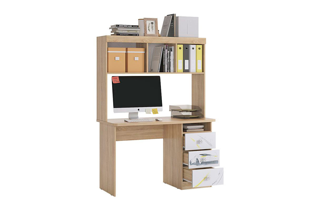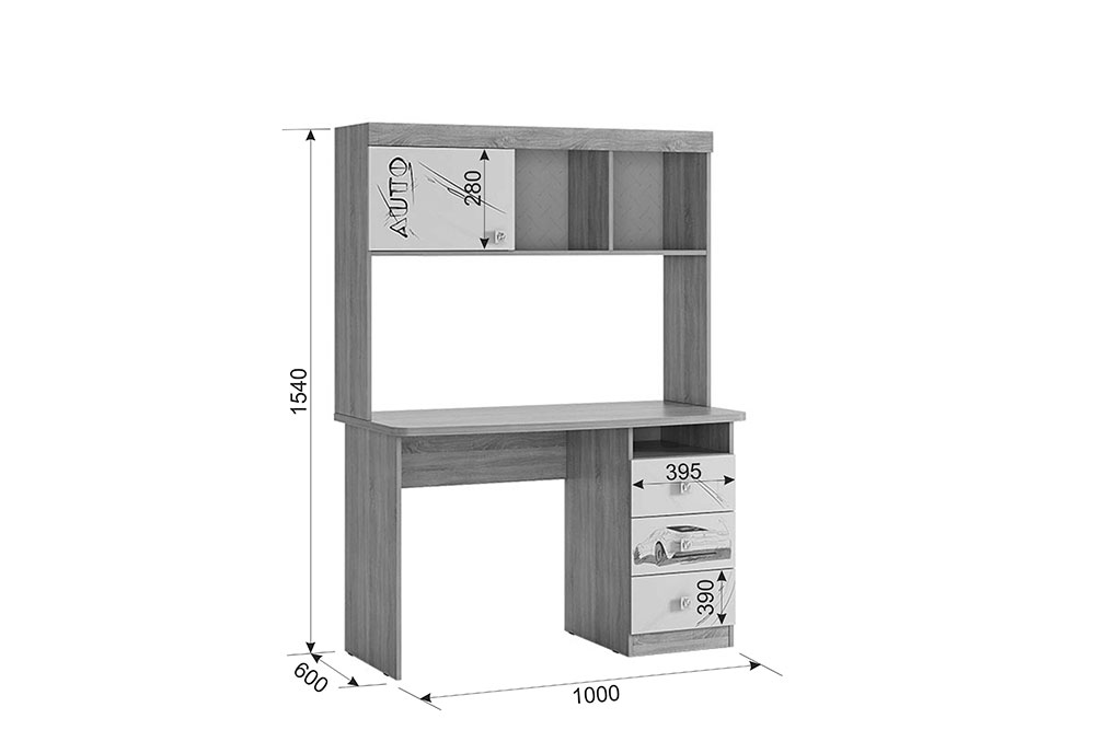 Стильный стол «Форсаж» – мечта каждого мальчика. Компактный стол прекрасно впишется даже в маленькое пространство детской комнаты. Удобная столешница подойдет как для письма, так и для занятий на компьютере или ноутбуке. Открытые полки и закрытые ниши надстройки стола хорошо подходят для хранения учебников и школьных принадлежностей. В 3-х выдвижных ящиков поместится все, что необходимо для учебы и творчества. Эффектный принтерный рисунок на фасадах выдержан в общем стилистическом решении. Рисунок устойчив к истиранию и ультрафиолету. Рекомендуем комплектовать: с остальными модулями детской «Форсаж»