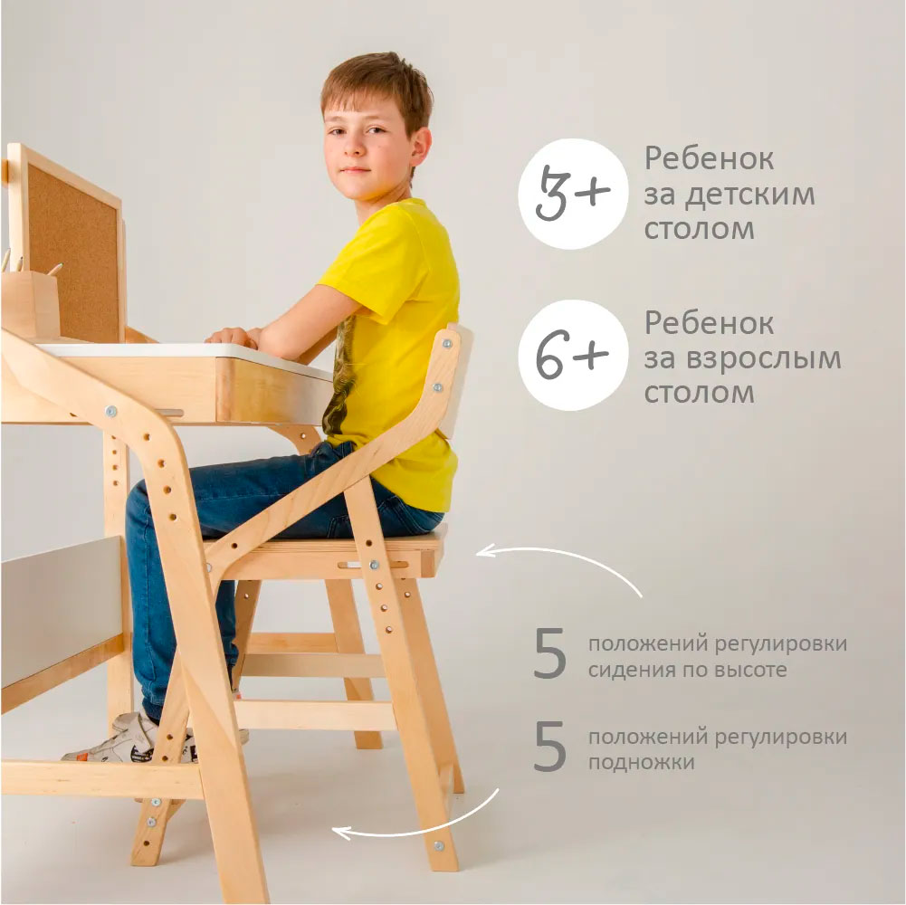 Стул предназначен для сидения за взрослым письменным столом детям с 4 лет.