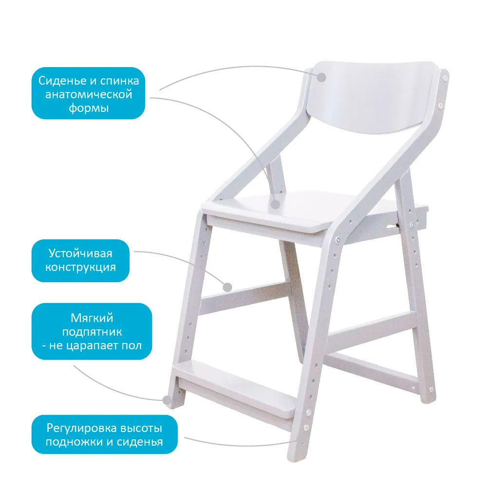 Стул предназначен для сидения за взрослым письменным столом детям с 4 лет.