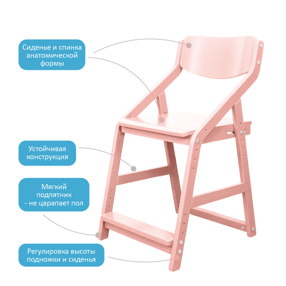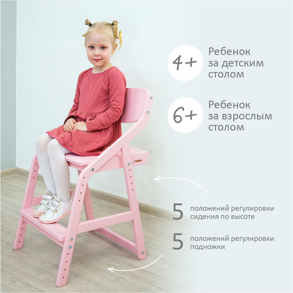 Стул предназначен для сидения за взрослым письменным столом детям с 4 лет.