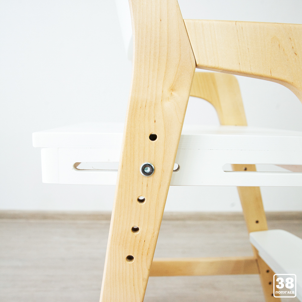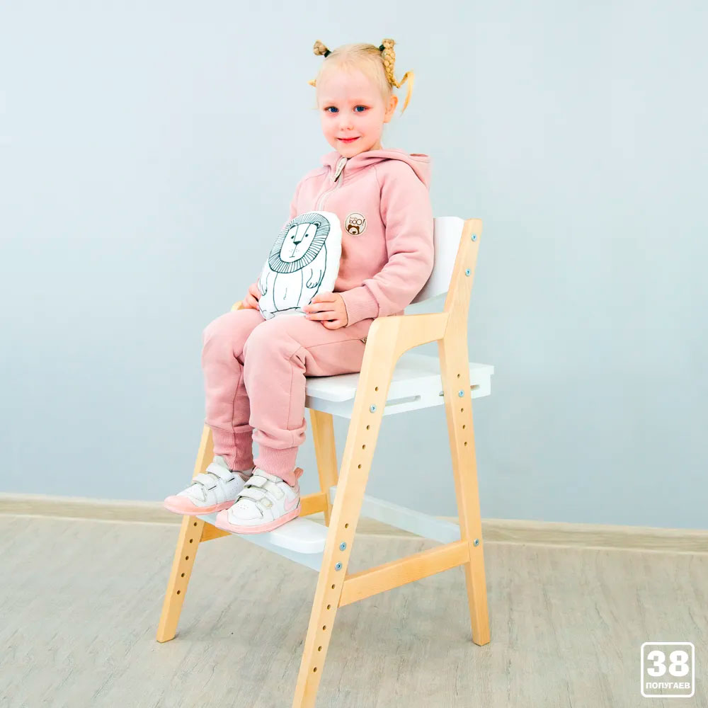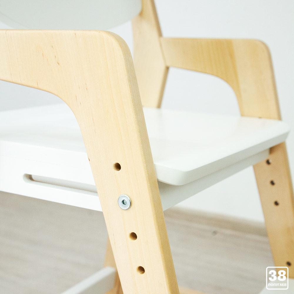 Стул предназначен для сидения детей с 2 лет за взрослым письменным и кухонным столом. Подходит даже взрослым (нижнее положение регулировки).