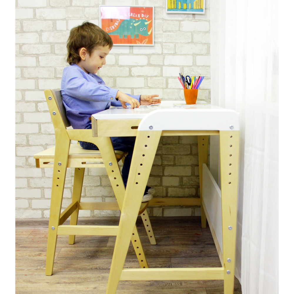 Стул предназначен для сидения детей с 2 лет за взрослым письменным и кухонным столом. Подходит даже взрослым (нижнее положение регулировки).