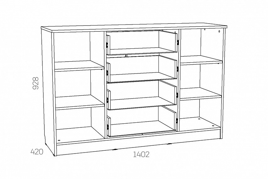 Габаритные размеры: Ш 1402 x Г 420 x В 928