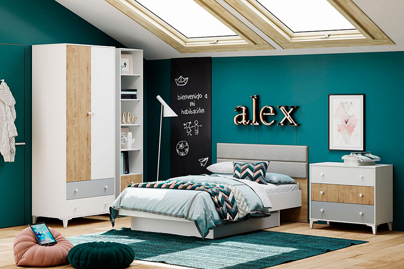 Комплектация №2 представляет собой готовый комплект для стильного оформления детской. Открытые полки шкафа-пенала позволят расставить на видных местах игрушки, сувениры, книги. Система хранения также представлена двустворчатым шкафом и комодом, где можно удобно разместить одежду. Кровать оборудована ящиком, куда можно положить белье, обувь или другие вещи.